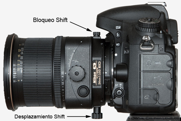 Antes de rotar el objetivo hay que aflojar el bloqueo del desplazamiento