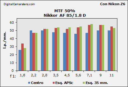 colocándose en las 58 l.p./mm. , valor máximo que alcanza la D200.