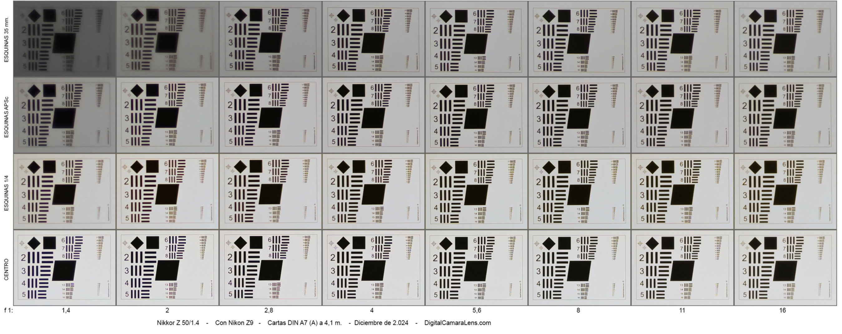 diferencial de nitidez, viñeteo y ACs entre los f 1:1,4 y f