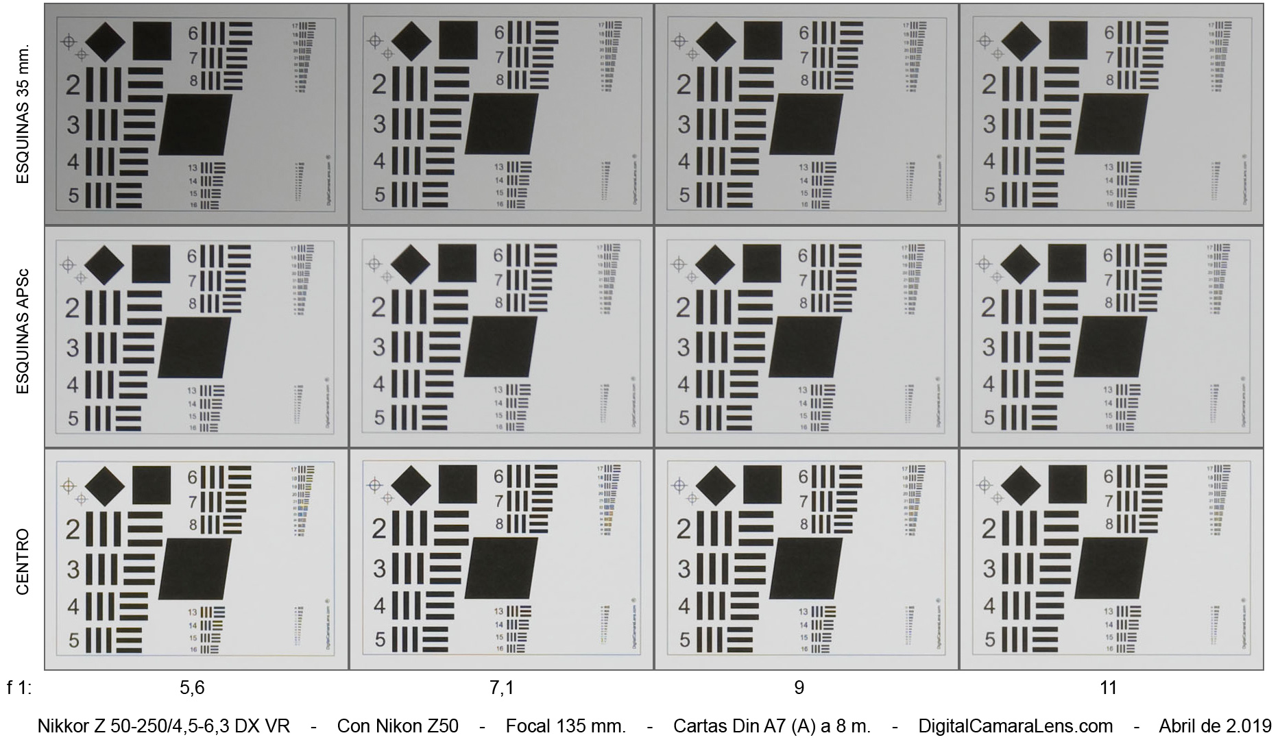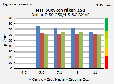 los 135 y 200 mm. A diafragmas más cerrados no realiza más cierre.