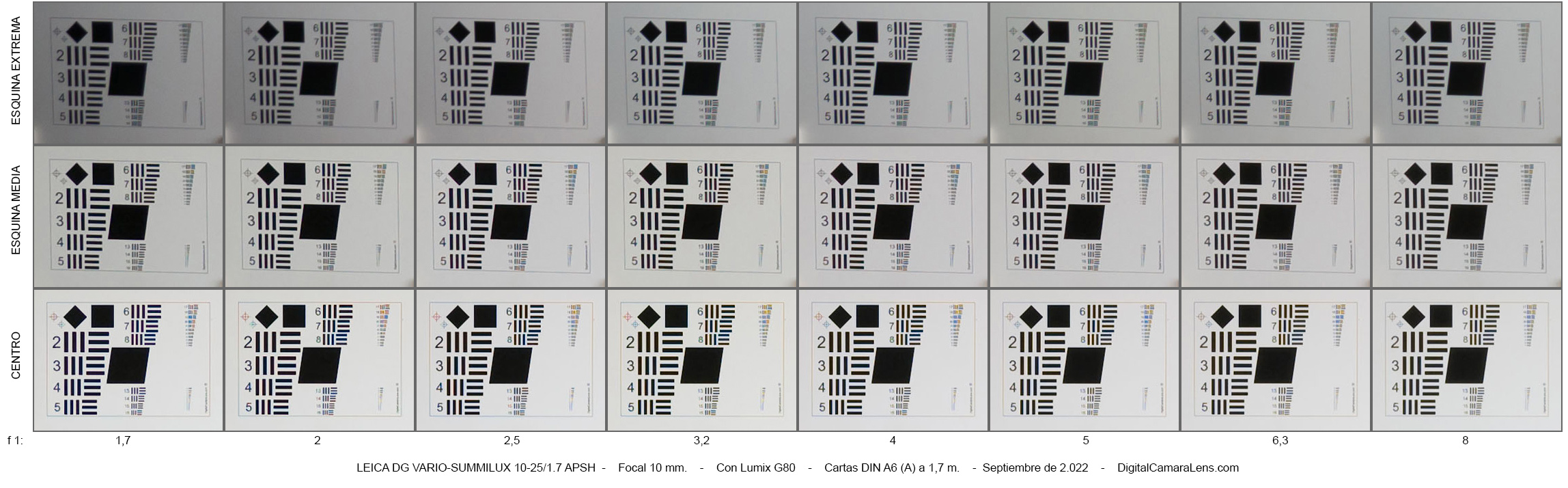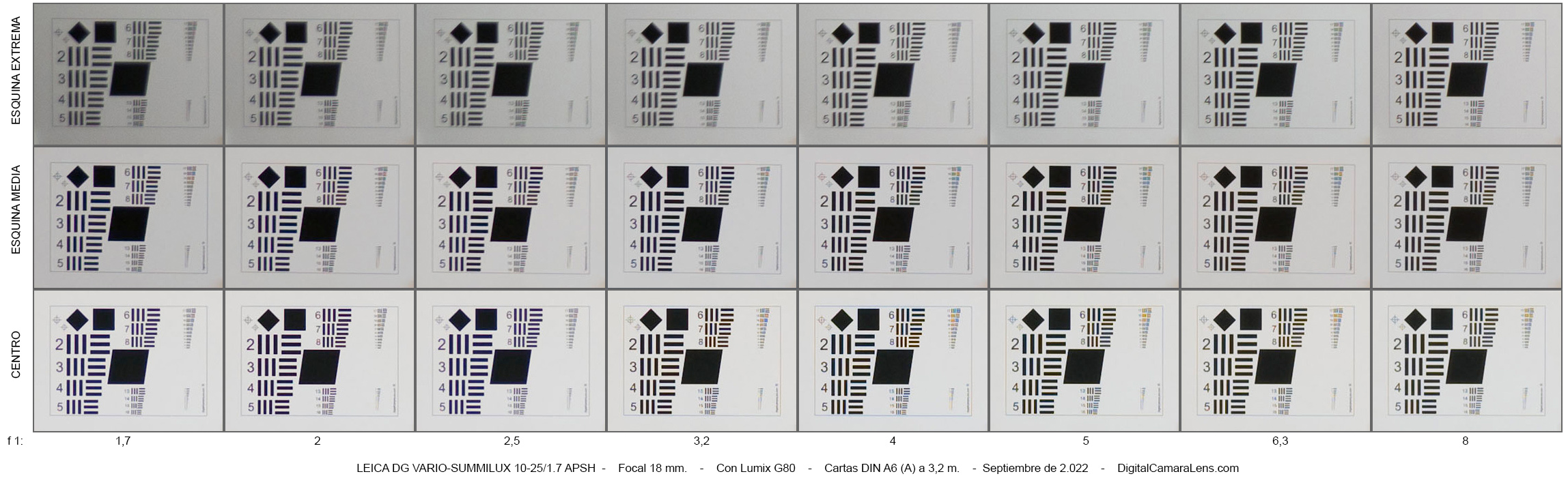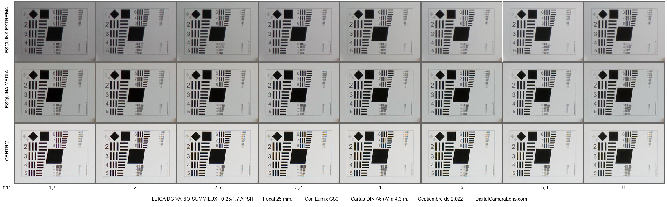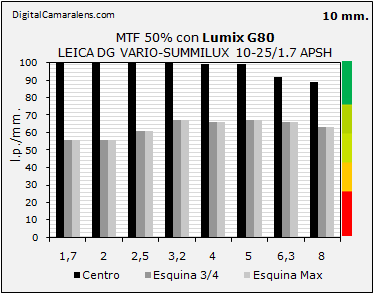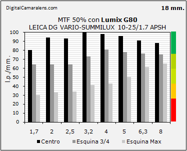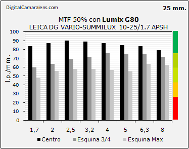MTF50% en l.p./mm. a 25 mm. y f 1:1,7