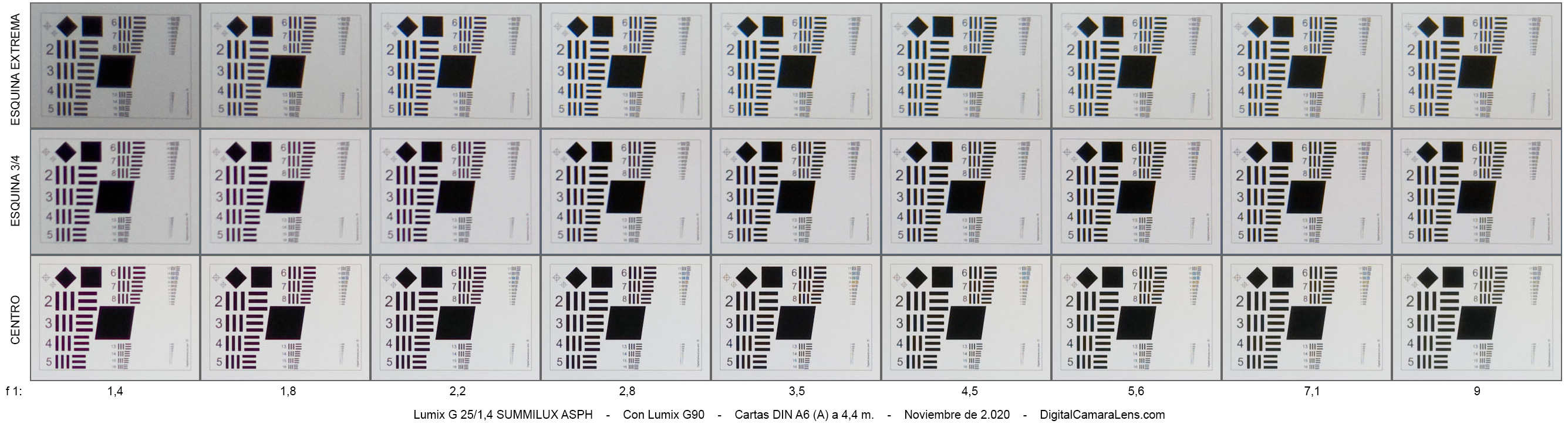 Las longitudinales se aprecian muy mejorables en f 1:1,4 y f 1:1,8. En f