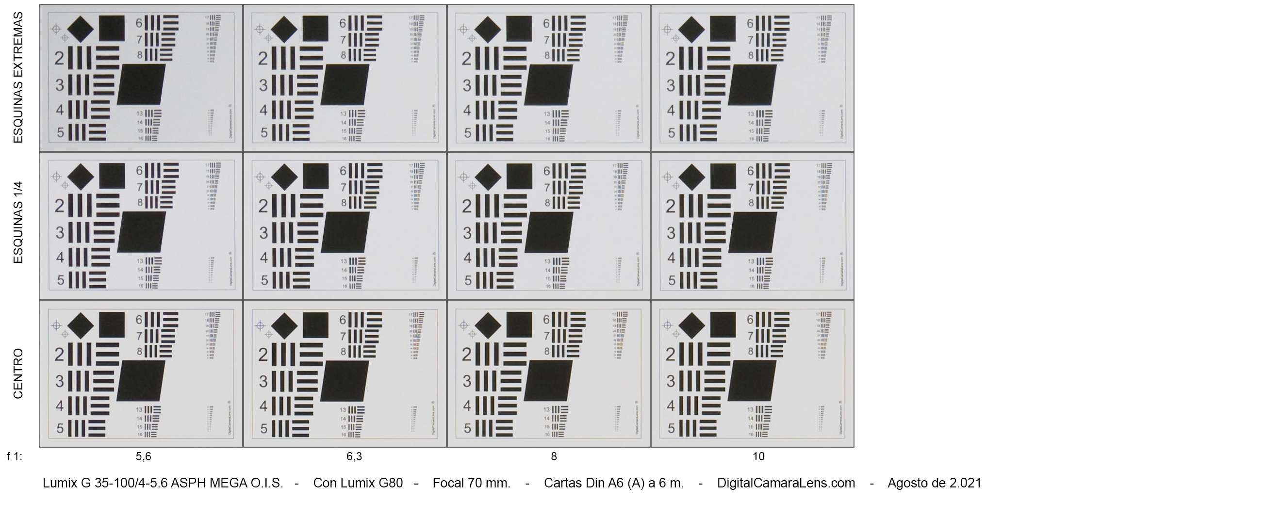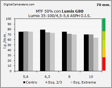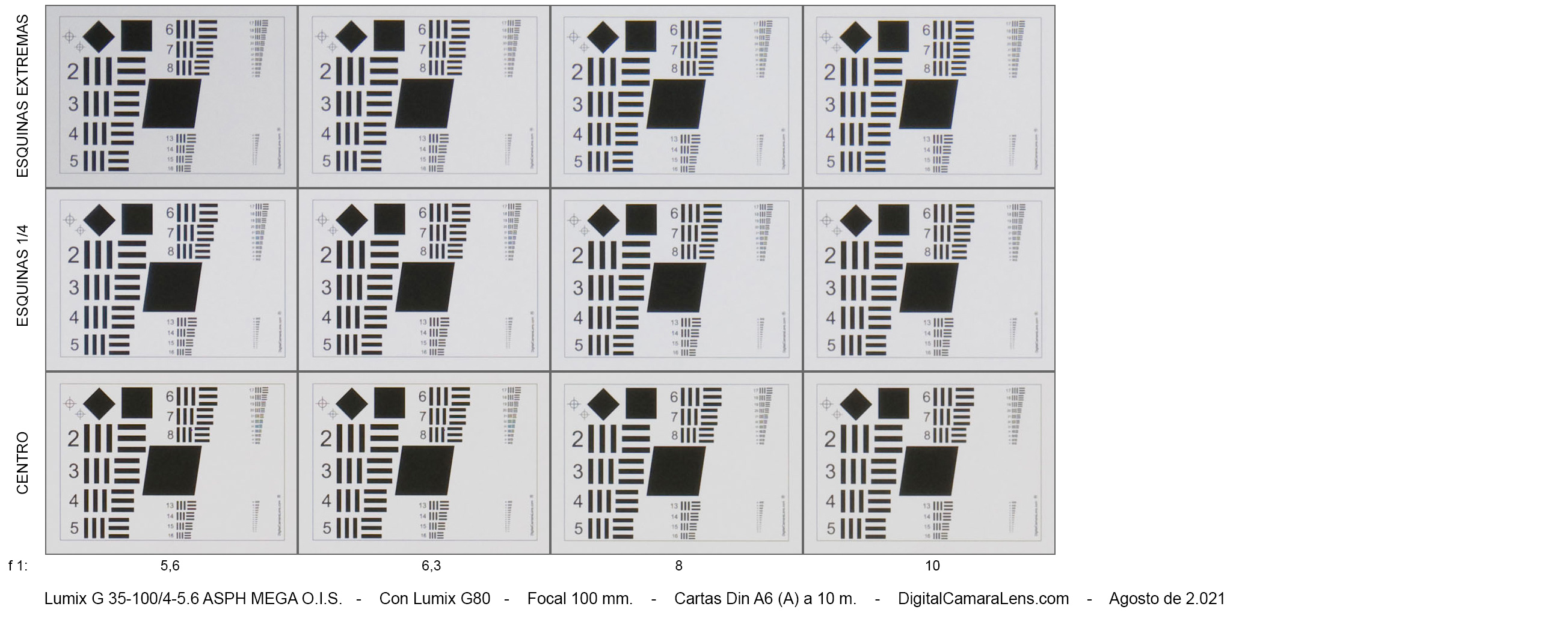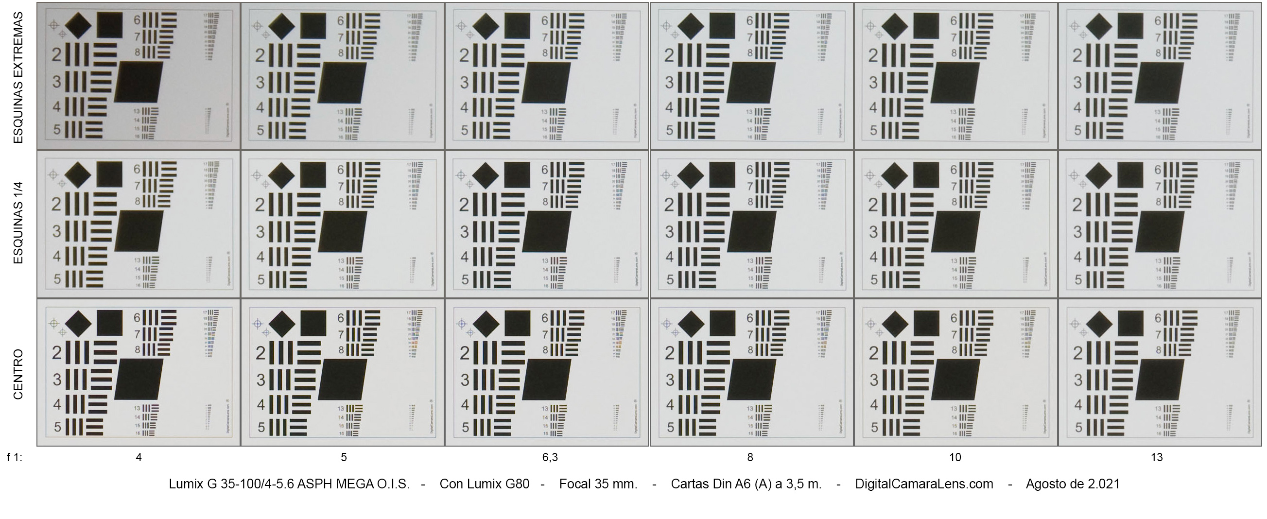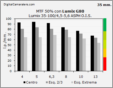 - Nitidez centro-esquina en 35 mm. excelente y notable en 50 mm. y 100