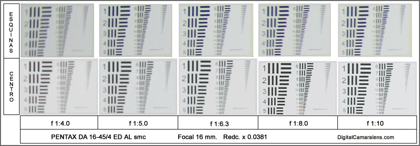 En el centro logra unos valores correctos a partir de f 1:6.3 pero las