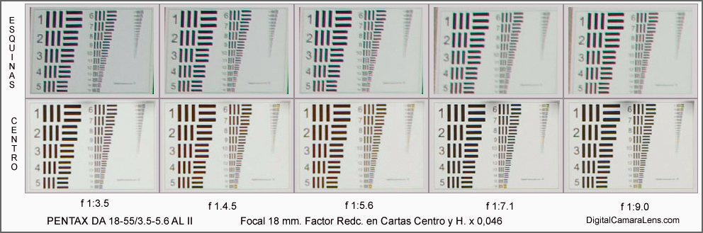 El viñeteo se aprecia muy alto en 18 mm. en prácticamente todos los