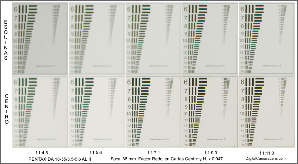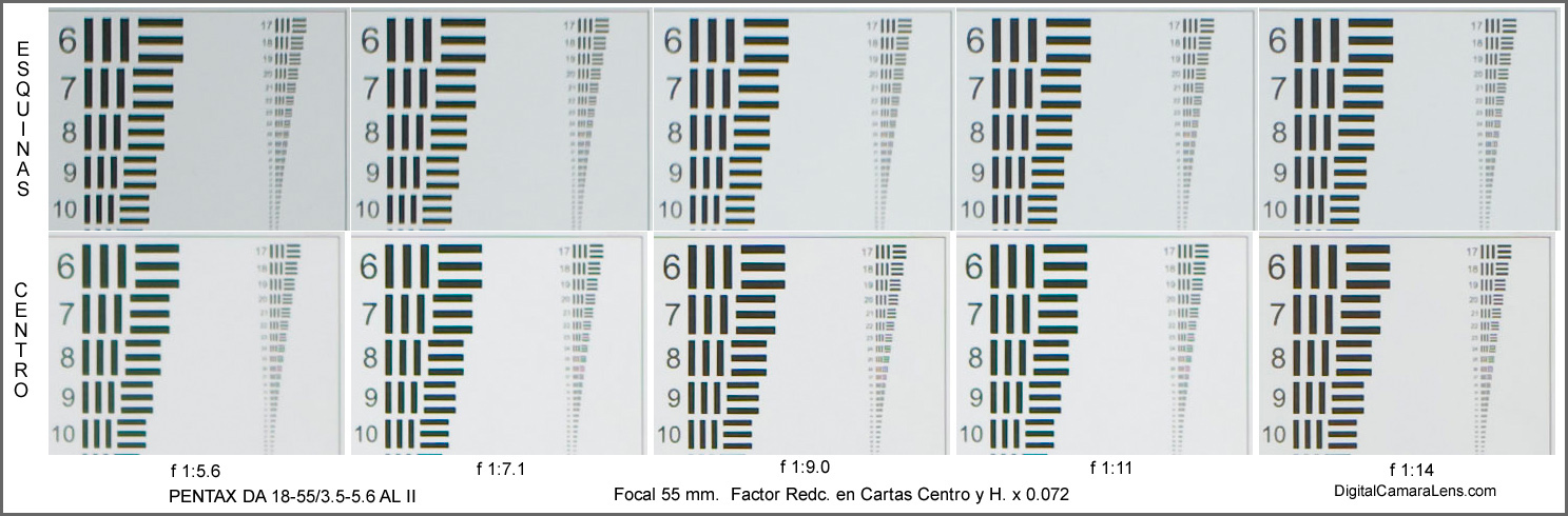 mm. el contraste en esquinas baja de forma apreciable quedando en los 55