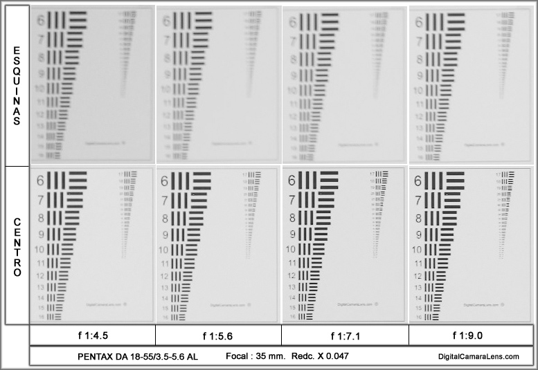 la zona de esquinas consigue a f 1:9.0 las 31 l.p.mm. pero con un