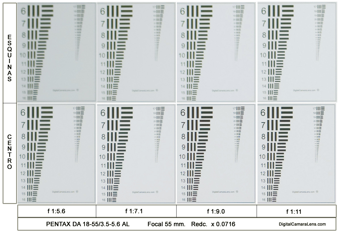 del 40% mejorando de forma progresiva hasta los f 1:11. Las esquinas
