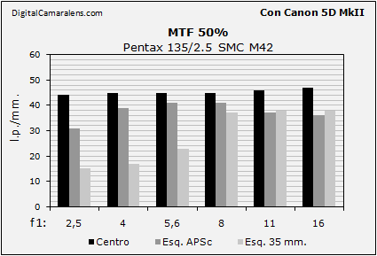 hacer de este 135 mm., visto en una DSLR, es de aprobado holgado, incluso