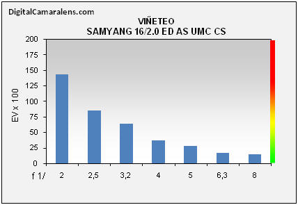 Excelente desde plena abertura y sin efectos de desplazamiento de