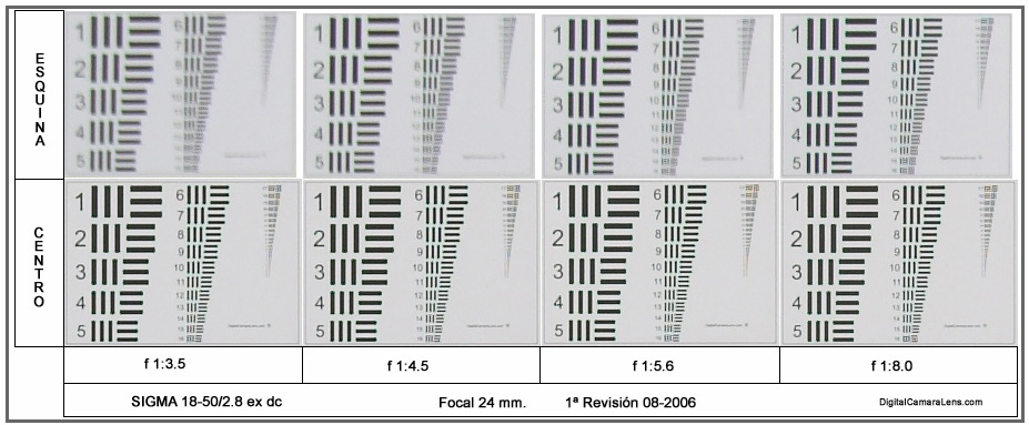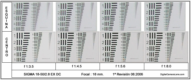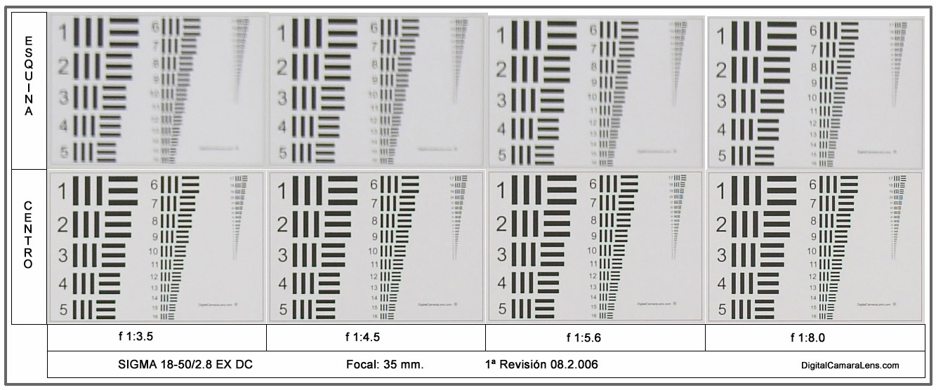 resolución en cuatro focales y dos diafragmas ( f 1:5.6 y f 1:8.0) el menor y máximo más idóneos