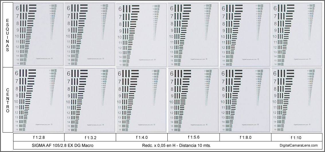 1:2.8 y centro alcanza el mayor valor resolutivo que la cámara