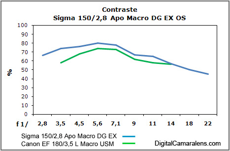 que arrojó en la prueba correspondiente el Canon EF 180/3,5 L macro