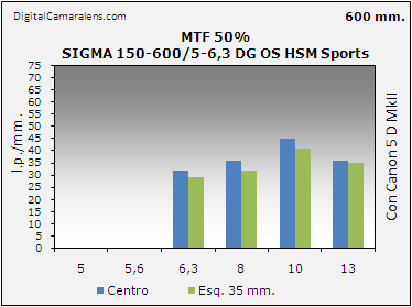podemos ver la diferencia de ampliación entre los 500 y los 600 mm. en