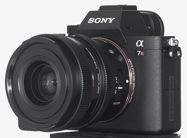 máquina donde se prueba, la Sony A7. Con el objetivo colocado el
