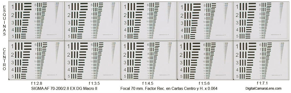 En estos 200 mm. en la zona de los tres primeros diafragmas testados