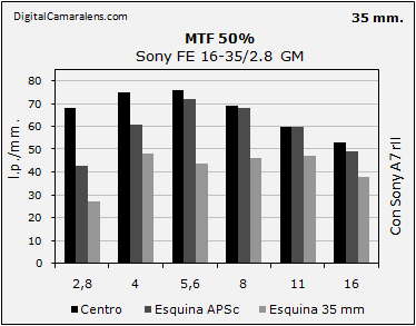 Sony FE 16-35/4 G PZ podemos ver que a mismo diafragma y focal están