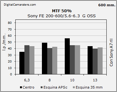 - Rendimiento óptico notable justo, mejorable en los 600 mm.