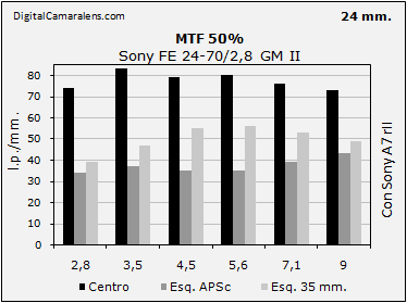 las focales ya que en 24 mm., la focal más crítica en estos zooms, le ha