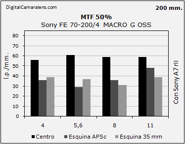 contraste en todo el rango focal, en especial en los 200 mm., respecto a