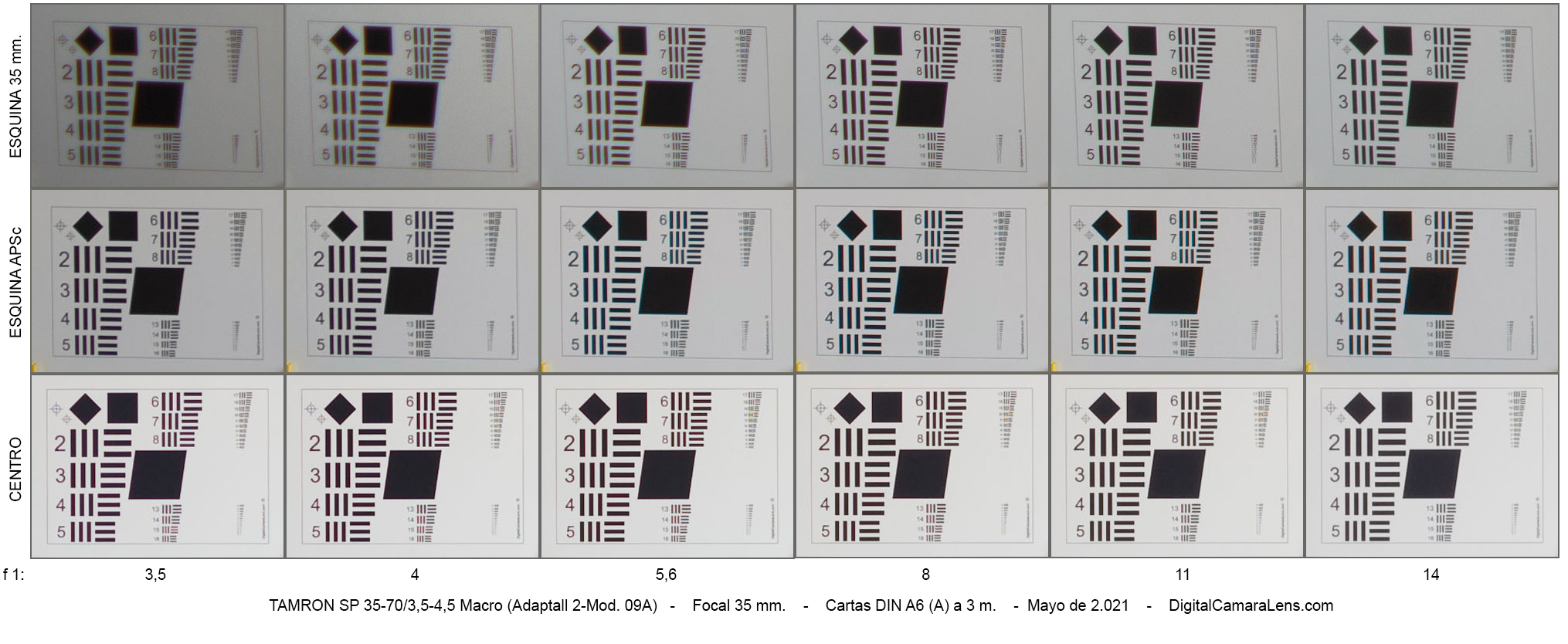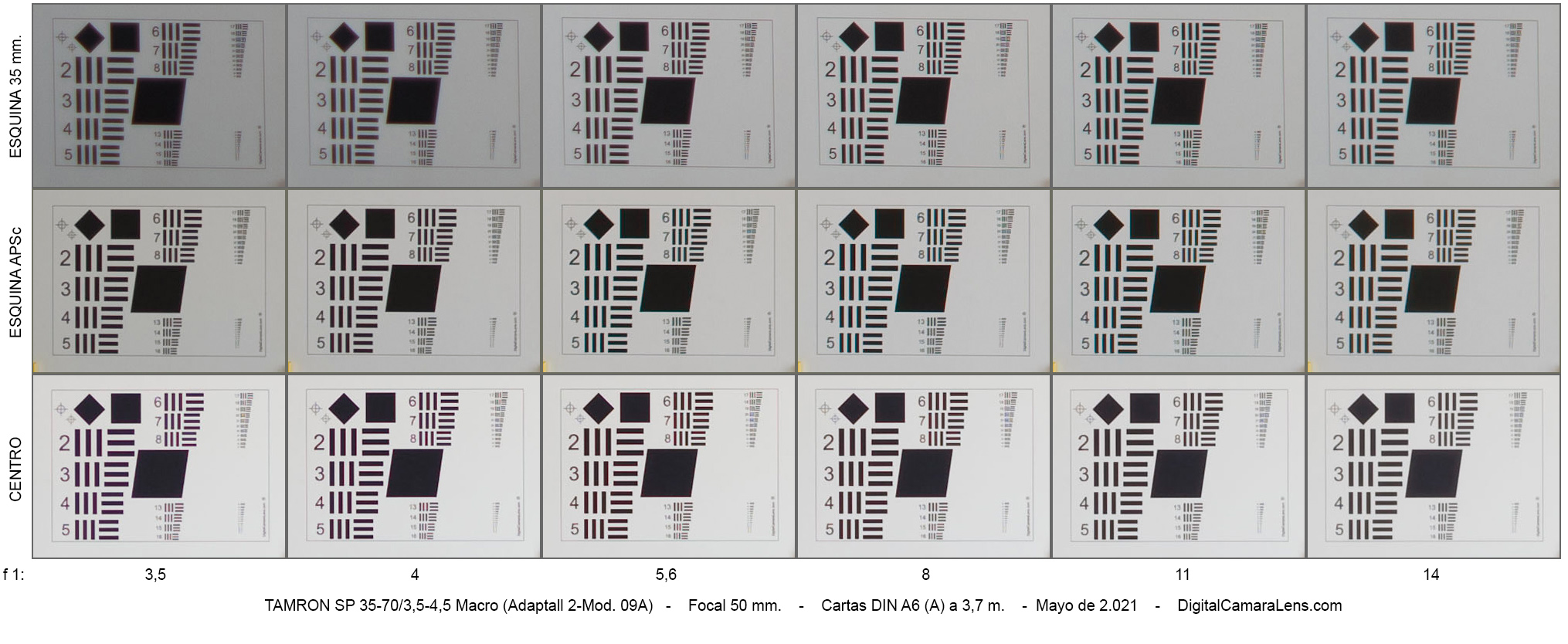 Probeta 70 mm. - Magnificación 1:2,78 (anunciada 1:2,8) |