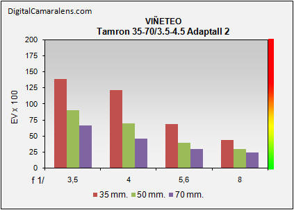 apertura máxima varía de f 1:3,5 en 35 mm. hasta los f 1:4,5 a 70 mm. El