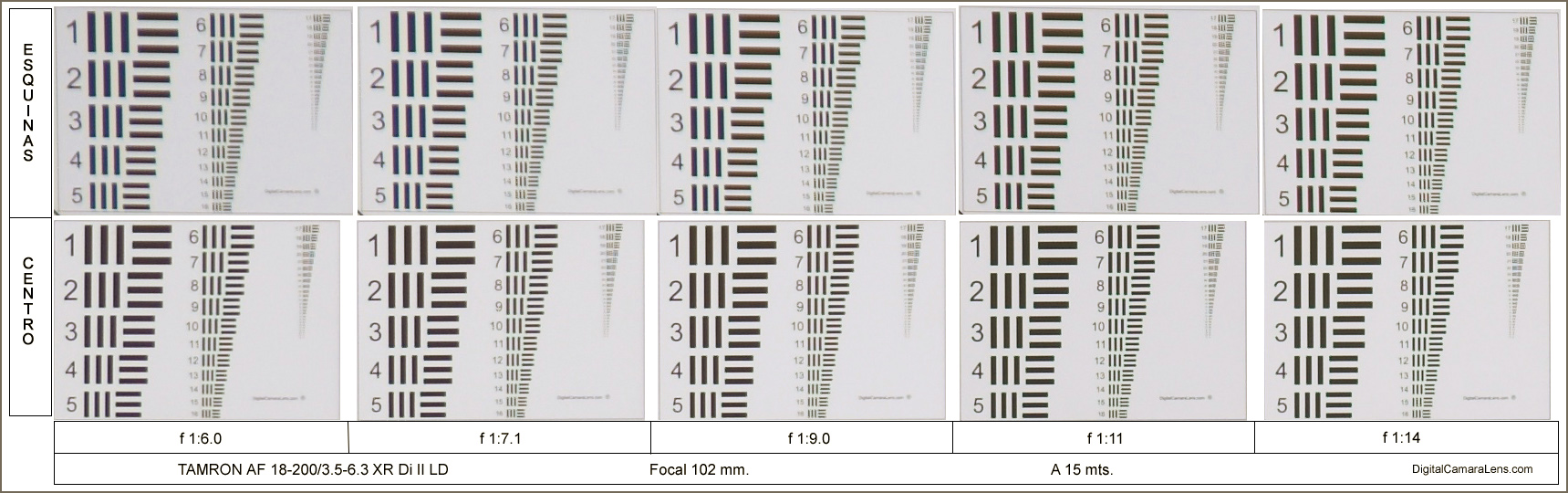 Nótese el mayor tamaño de los números y líneas en el Tamron.
