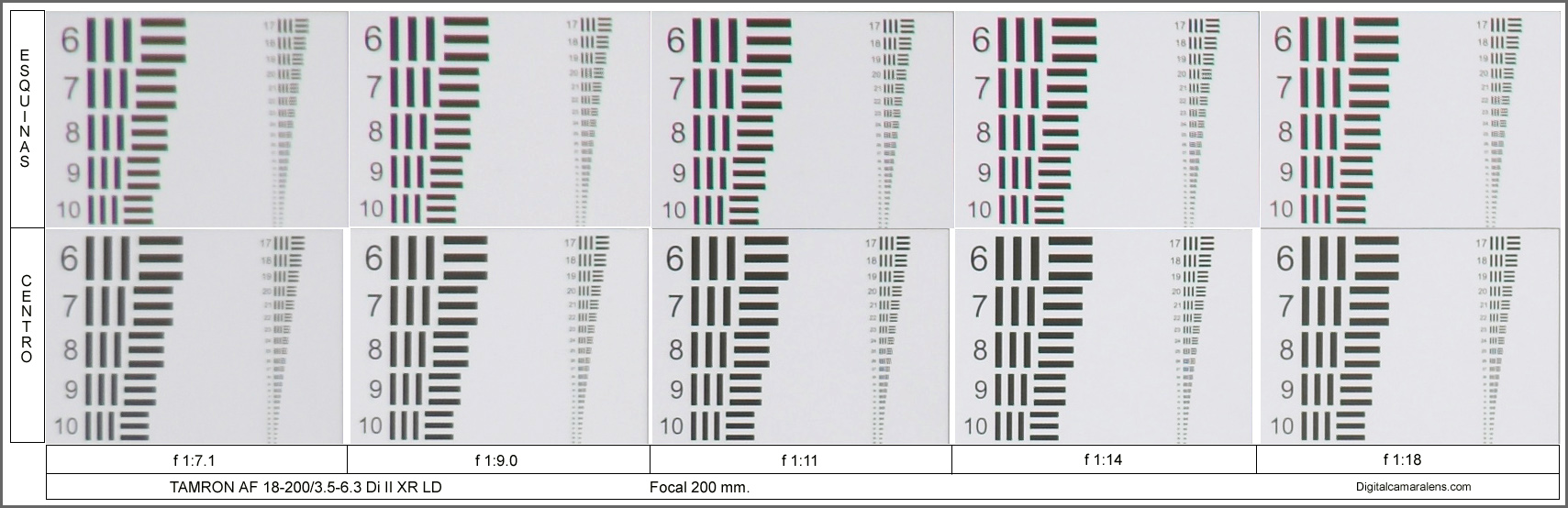 En la focal de 200 mm. se aprecia claramente que el mejor diafragma es el