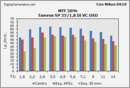 RGB registrado a plena abertura excelente. Los valores centro/esquina