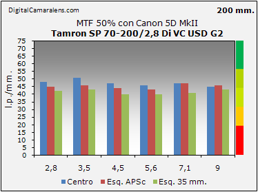 MTF centro/esquinas obtenidos, ya desde plena abertura son muy