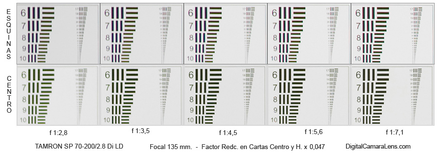 propicia en 70 y 135 mm. un menor contraste en esquinas extremas.