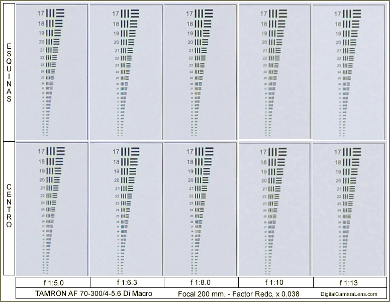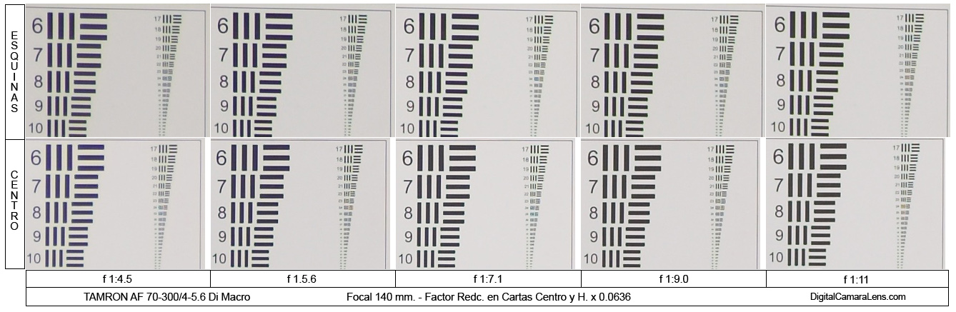 diafragmas centro/esquinas : f 1:11 - 13