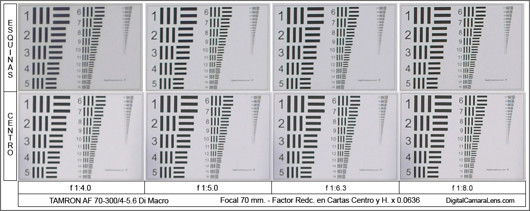 70 mm. - Mejor zona de diafragmas centro/esquinas : f 1:8.0