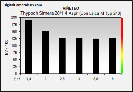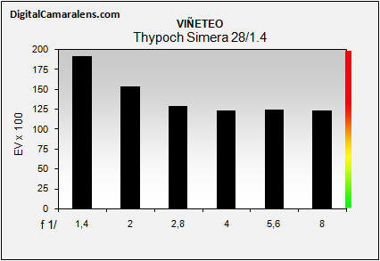 Viñeteo elevado con baja corrección por diafragmado.