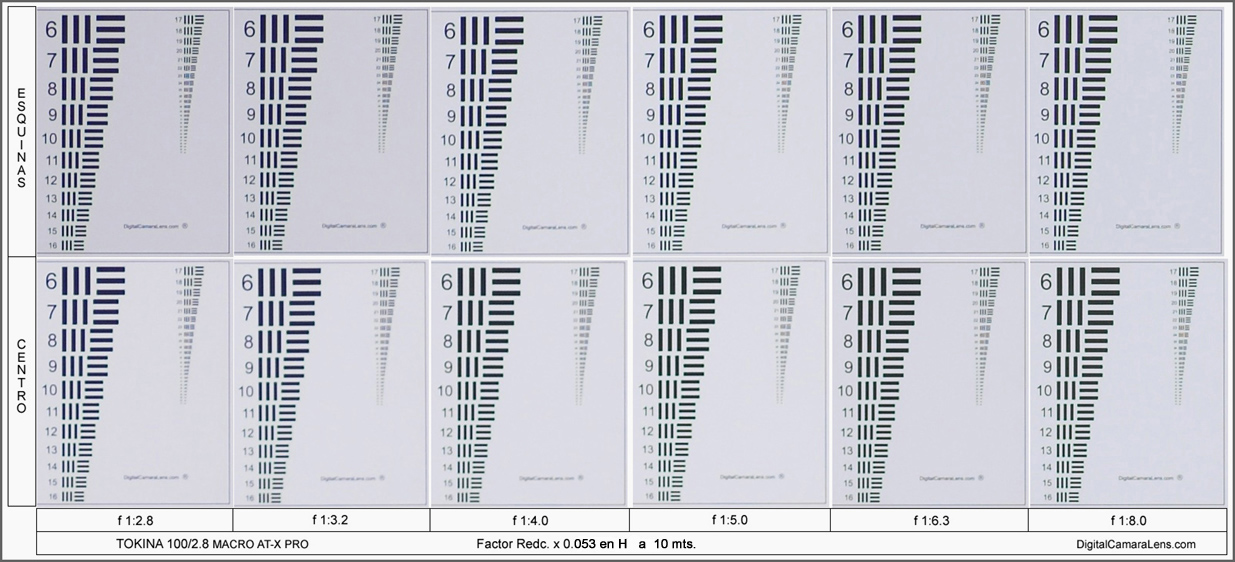 esquinas/centro llegando a igualarse en los f 1:6.3 y f 1:8.0.