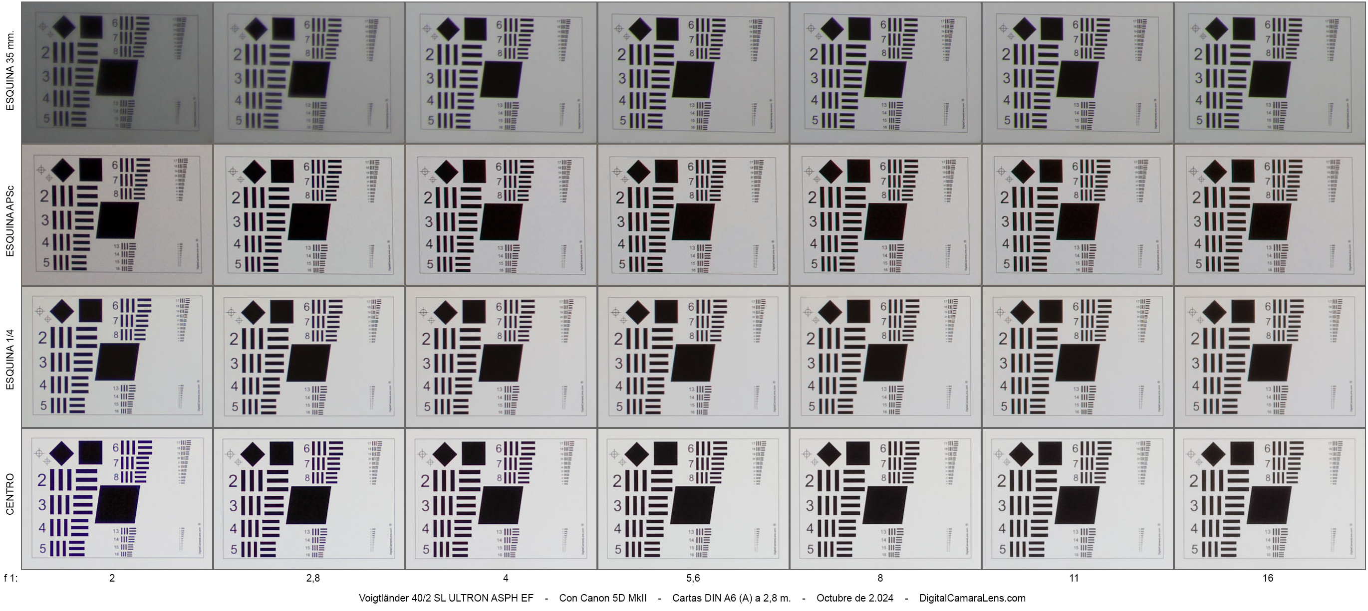 árboles, etc..) en las escuadras para apreciar nitidez centro-ángulo.