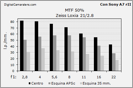 zona central y esquinas APSc, mejorable en las esquinas de 35 mm. dado,
