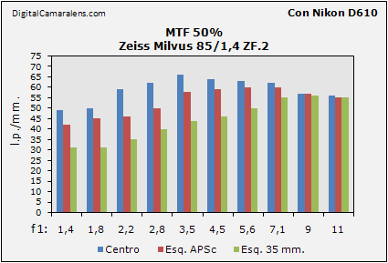 hablando siempre en el rango f 1:1,4 - f 1:2,8, presenta una curva