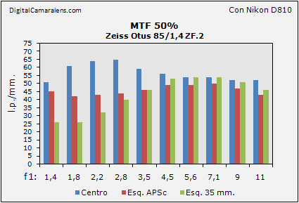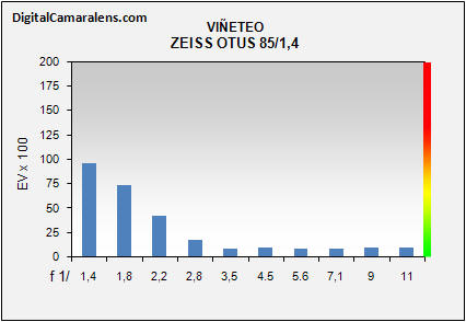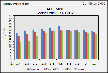 cuyos fringes y valores suben hasta los f 1:3,5. A partir de f 1:4,5 la