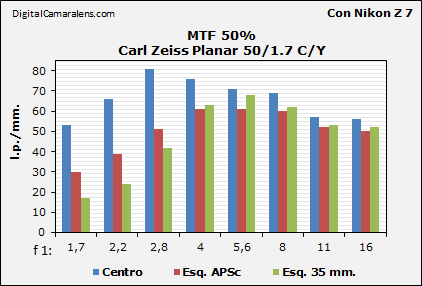 lado la tabla de su versión actual, El Milvus 50/1,4.